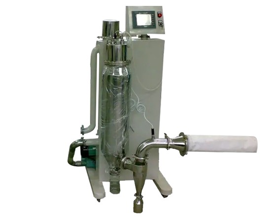在干燥室內(nèi),將待干燥液體通過霧化器霧化成微小液滴,將干燥介質(zhì)與熱氣體進(jìn)行直接接觸、混合,將水分排除,再通過氣固分離收集,獲得粉末或顆粒狀。